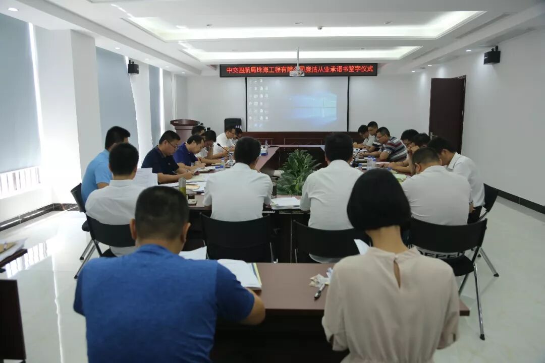 会议首先由本部党支部书记宣读《中交四航局珠海工程有限公司管理人员廉洁从业承诺书》,随后,公司领导与各单位、各部门主要负责人一起在承诺书上签字,对廉洁从业许下庄严承诺。签订党风廉政建设承诺书,主要目的是进一步统一干部思想,明确目标,落实责任,从而加强党风廉政建设,增强党员干部的责任意识,规范领导干部的从业行为,利于责任人自觉遵守廉洁自律规定。